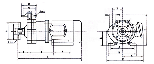 驅動裝置采用主動磁鐵聯軸器直接裝在電機軸上,泵室完全封閉,通過磁力偶合間接驅動泵上帶磁鐵的葉輪旋轉,結構緊湊、安全節能。